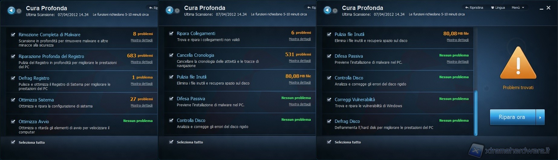 Come evidenziato nei test eseguiti su Windows 7, i metodi di rilevazione e pulizia nella modalità Cura Rapida sono i medesimi sia per la versione gratuita che a pagamento.