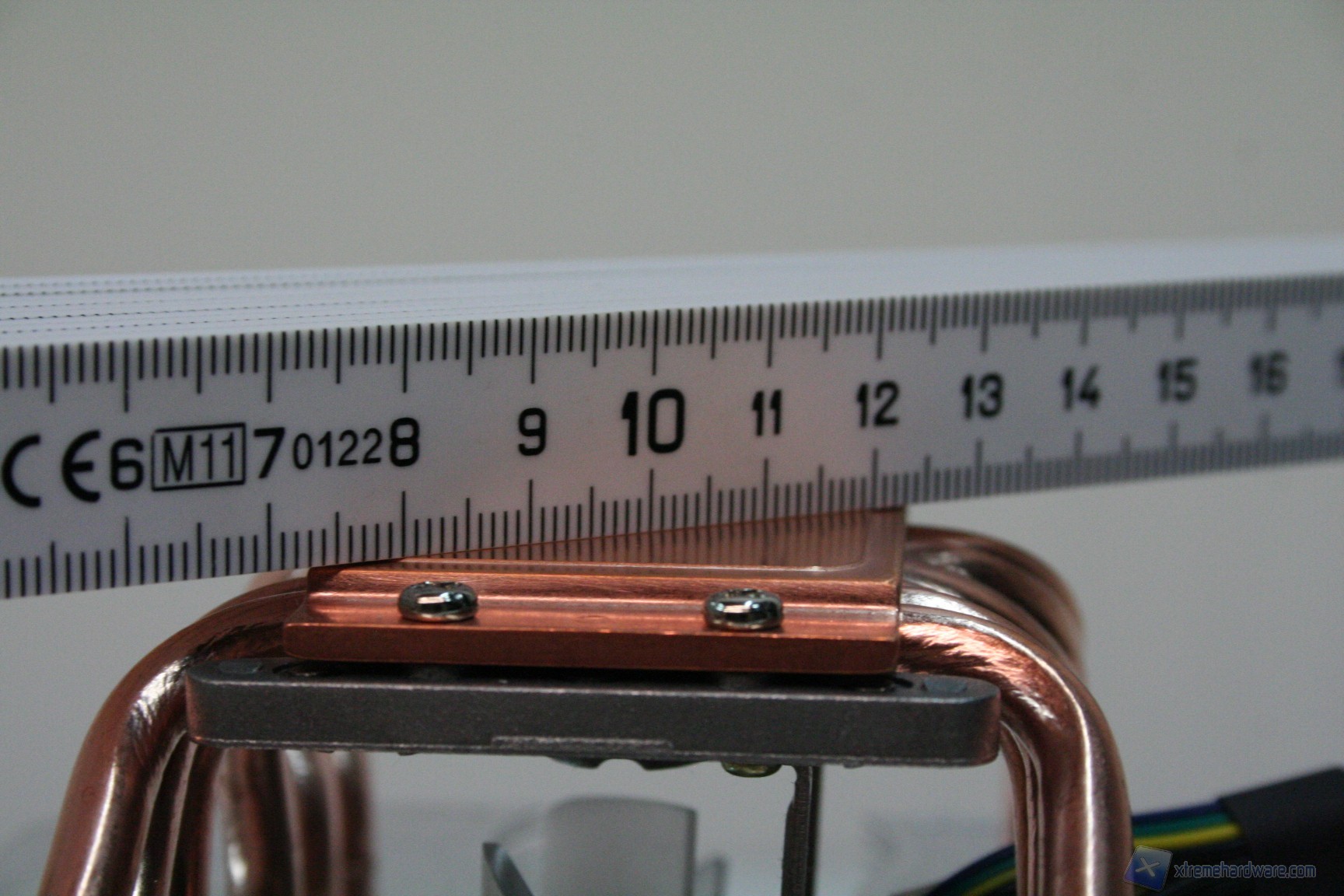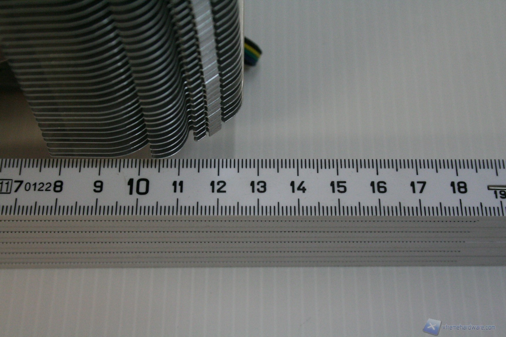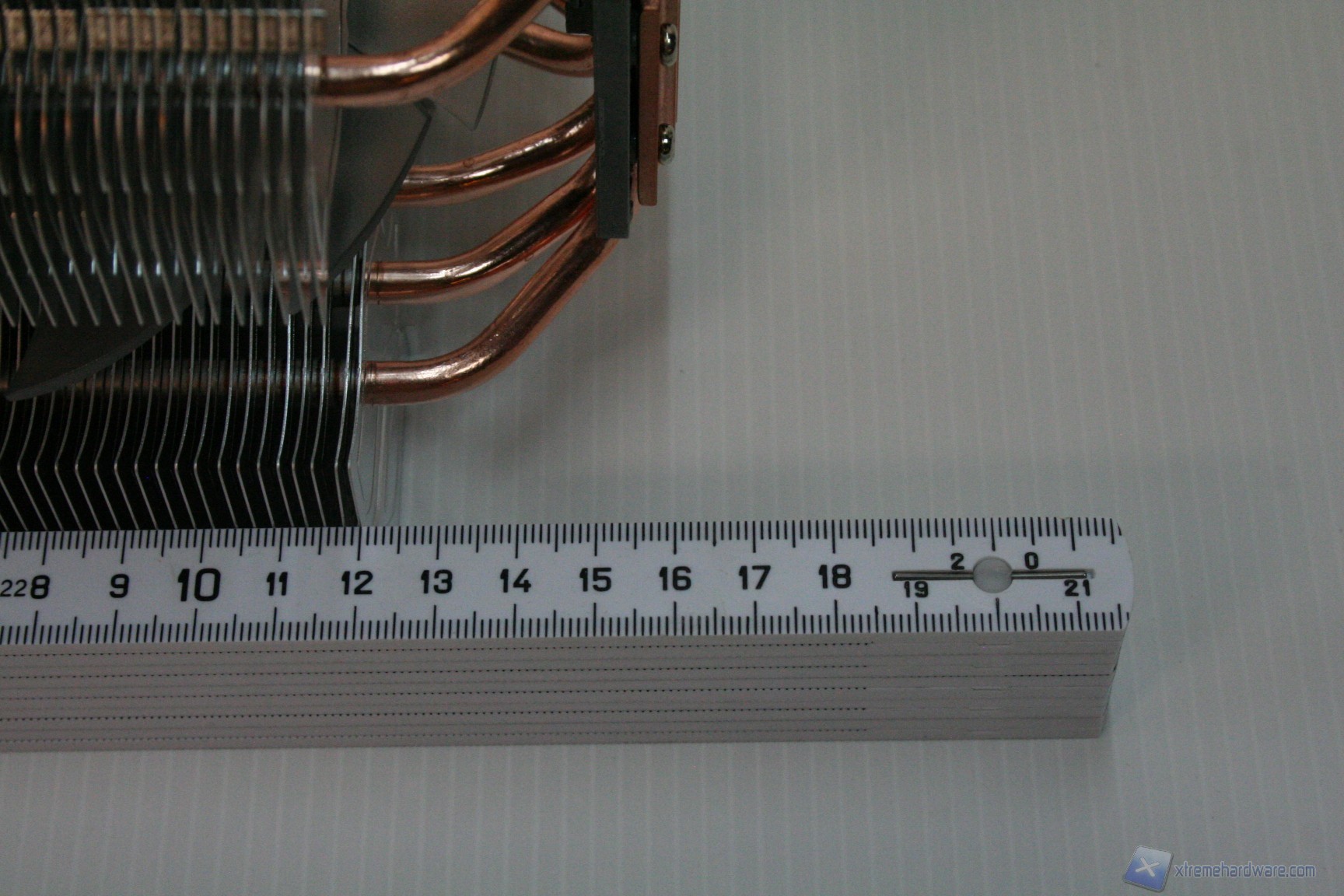 Il dissipatore non presenta un’altezza del corpo dissipante principale particolarmente elevata rispetto alla scheda madre, quindi significa che potrebbe esserci qualche incertezza nella compatibilità con schede madri aventi sistemi di dissipazione particolarmente grandi. La larghezza è abbastanza elevata, l’altezza tutto sommato contenuta per un dissipatore di questa tipologia, ma la profondità è purtroppo molto elevata, quindi si avrà una compatibilità con RAM ad elevato profilo sul socket X79 praticamente nulla, se dovessero esserci tre ventole da 14cm; qualora fossero da 12cm, come potete vedere dalle fotografie, il problema è aggirabile rialzando le ventole. Questo fattore, purtroppo, è decisamente negativo e nel nostro caso ha reso impossibile l’utilizzo persino di un singolo banco di Corsair Dominator GT 2133. Fate attenzione nel rialzare le ventole con il dissipatore montato, cercate di esercitare la minima pressione possibile, onde evitare danneggiamenti della scheda madre.