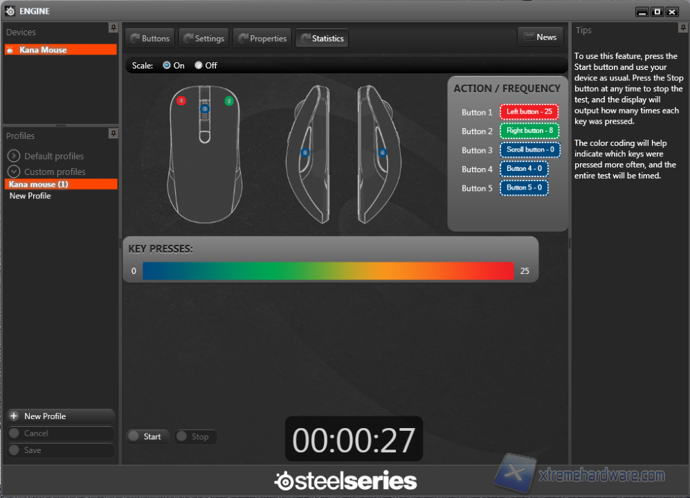 La sezione Statistics ci permette di vedere quali pulsati premiamo e quanto frequentemente lo facciamo.