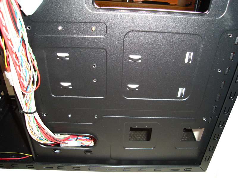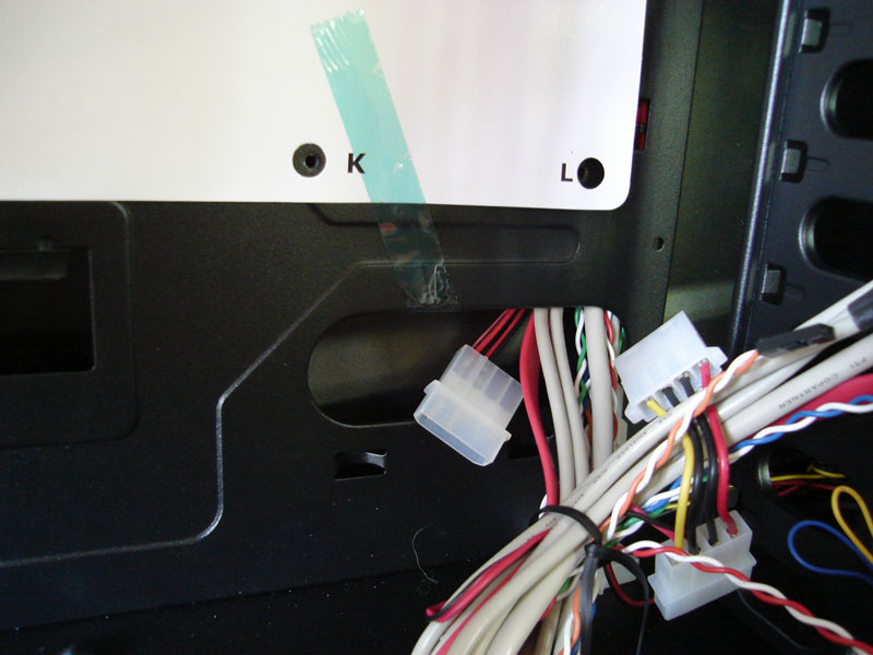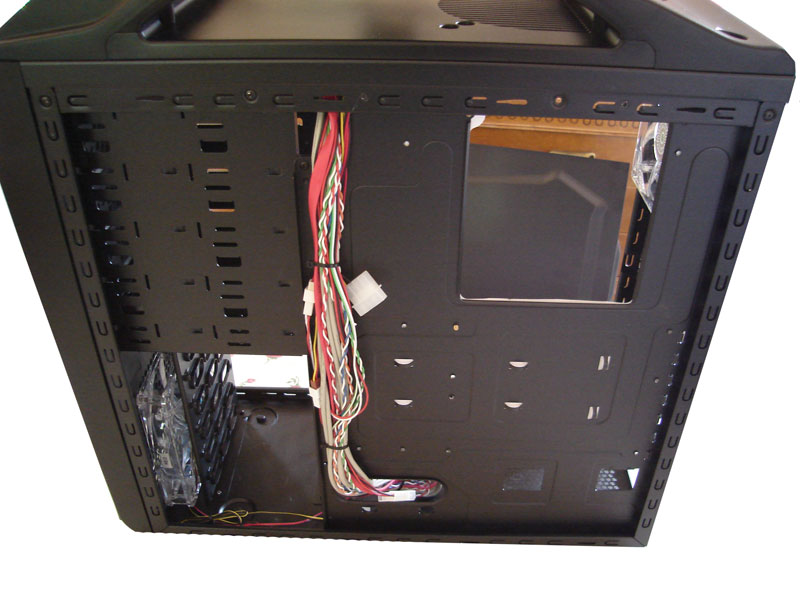 Un ulteriore foro per poter nascondere i cavi nella parte laterale della mobo non ci avrebbe dispiaciuto affatto, visto che alla fine risulterà libero solamente lo scompartimento inferiore; cavi di dimensioni abbondanti come il 24 pin della scheda madre e il doppio 6 pin per la vga risulteranno liberi all’interno del case, una soluzione non molto intelligente visto che il mid tower in questione ha una finestra in plexiglass che lascia intravedere tutto il suo contenuto interno. Quindi a meno che non si utilizzi un alimentatore  modulare, qualche cavo rimarrà per forza di cose “scoperto”.