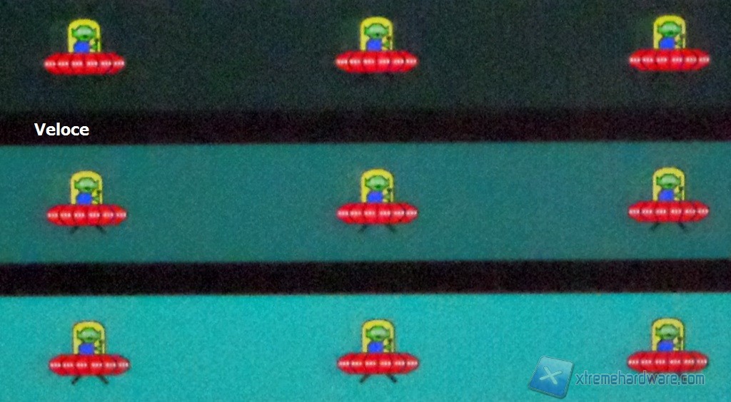 C’è poco da girarci intorno. Non è monitor gaming e la reattività non è il suo forte, ovviamente. Nell’analisi dei risultati medi, il setting “veloce” è quello che forse restituisce un comportamento migliore. Anche se potrebbe non sembrare dalle foto, i valori più spinti generano overshoot di segnale ben visibile ad occhio (maggiormente per il setting estremo), manifestando la scia più scura. In gaming l’effetto non è così evidente e si potrà provare anche il setting “più veloce”.