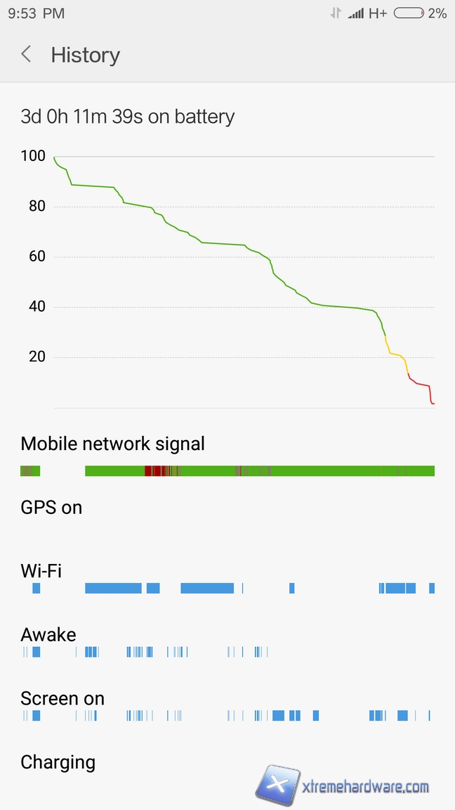 Solitamente ottime prestazioni e autonomia sono inversamente proporzionali, in questo caso però, grazie alla batteria da 4100mAh, l'autonomia del Redmi 4 Pro è incredibile. Senza intervenire sui settaggi predefiniti della MIUI e senza abilitare il risparmio energetico siamo arrivati a 3 giorni pieni e 10 ore di schermo acceso. Modificando la gestione delle app in background, ovvero consentendone l'esecuzione, l'autonomia è comunque rimasta superiore ai 2 giorni ed alle 7 ore di schermo acceso; ne consegue che anche con un utilizzo estremamente intenso sarà quasi impossibile scaricare completamente questo Redmi 4 Pro in una giornata soltanto.