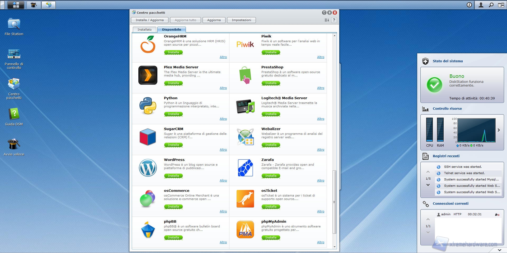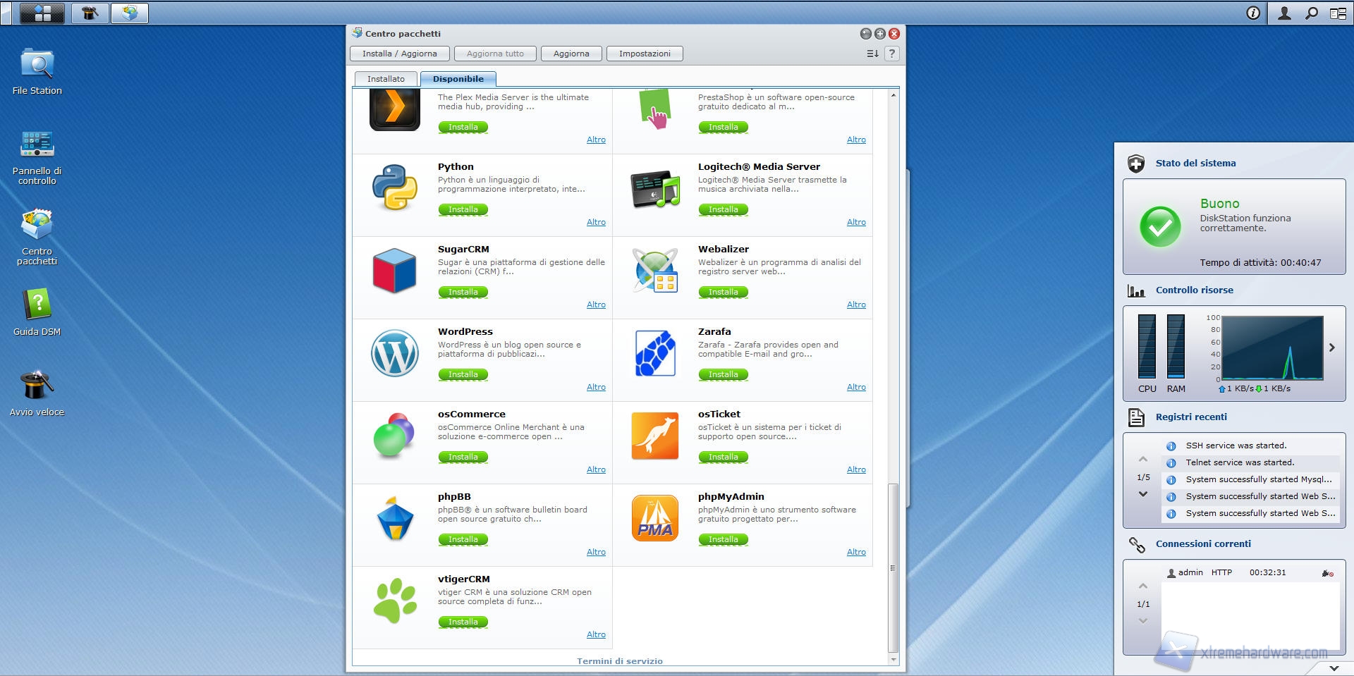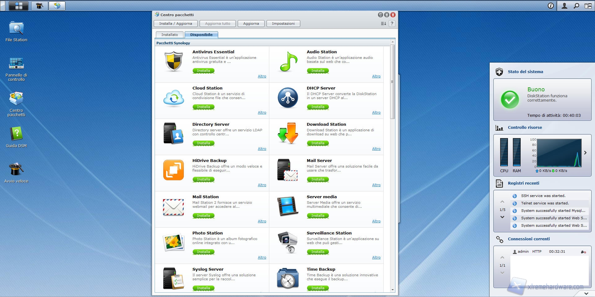 Andiamo ora ad analizzare un’altra funzione avente l’icona sul desktop del DSM 4.1 installato sul nostro Synology DS412+; il centro pacchetti.