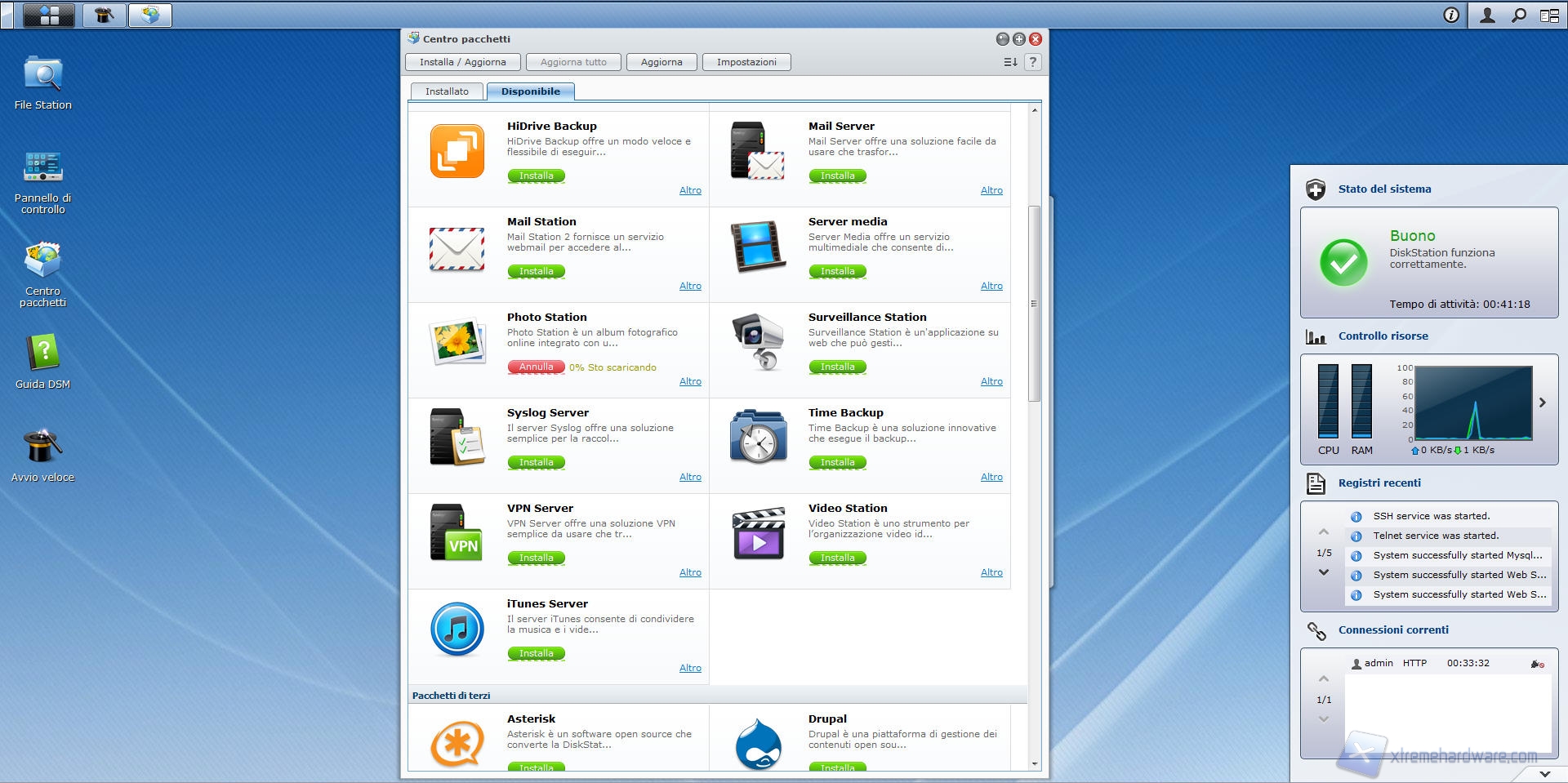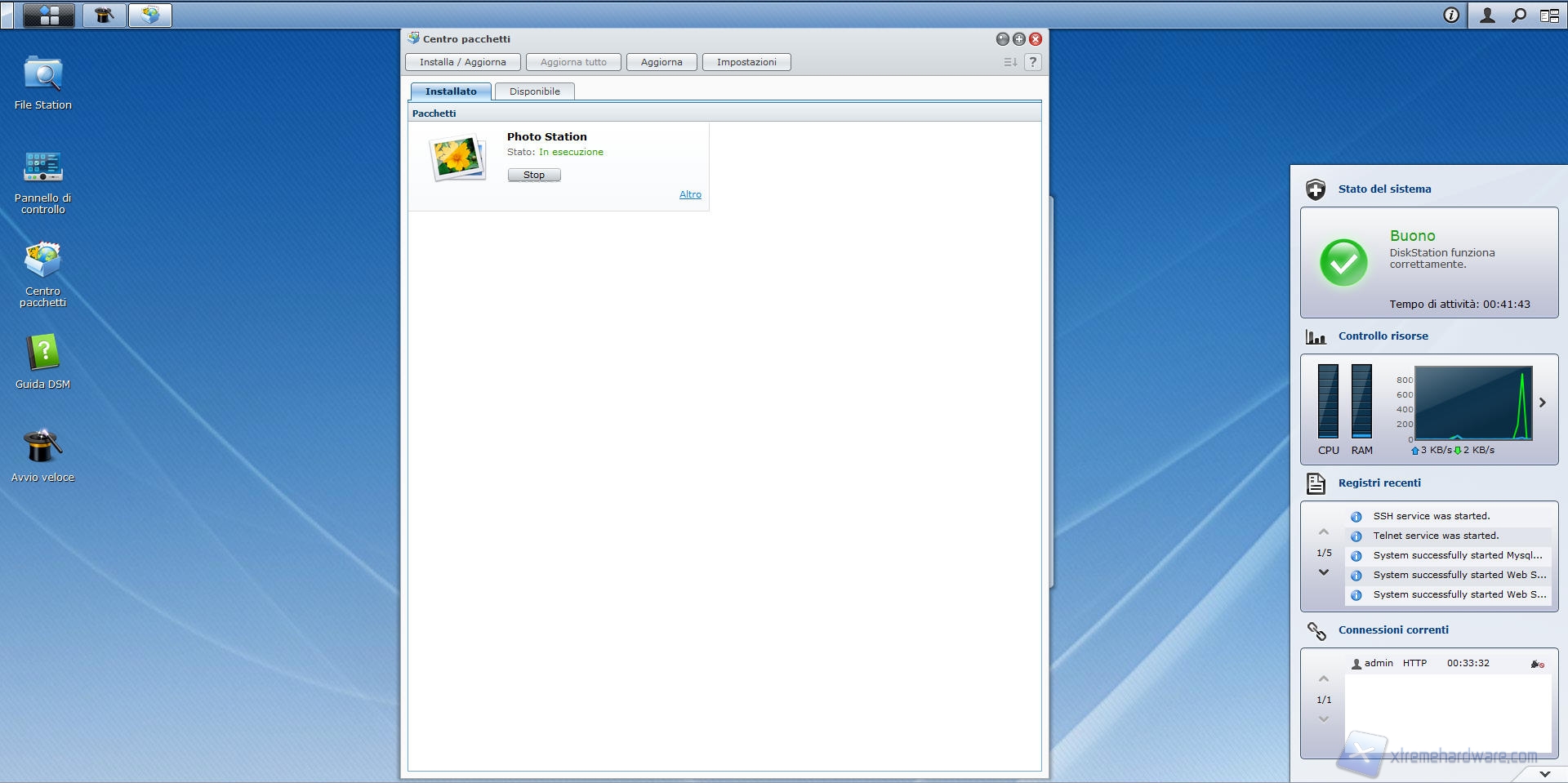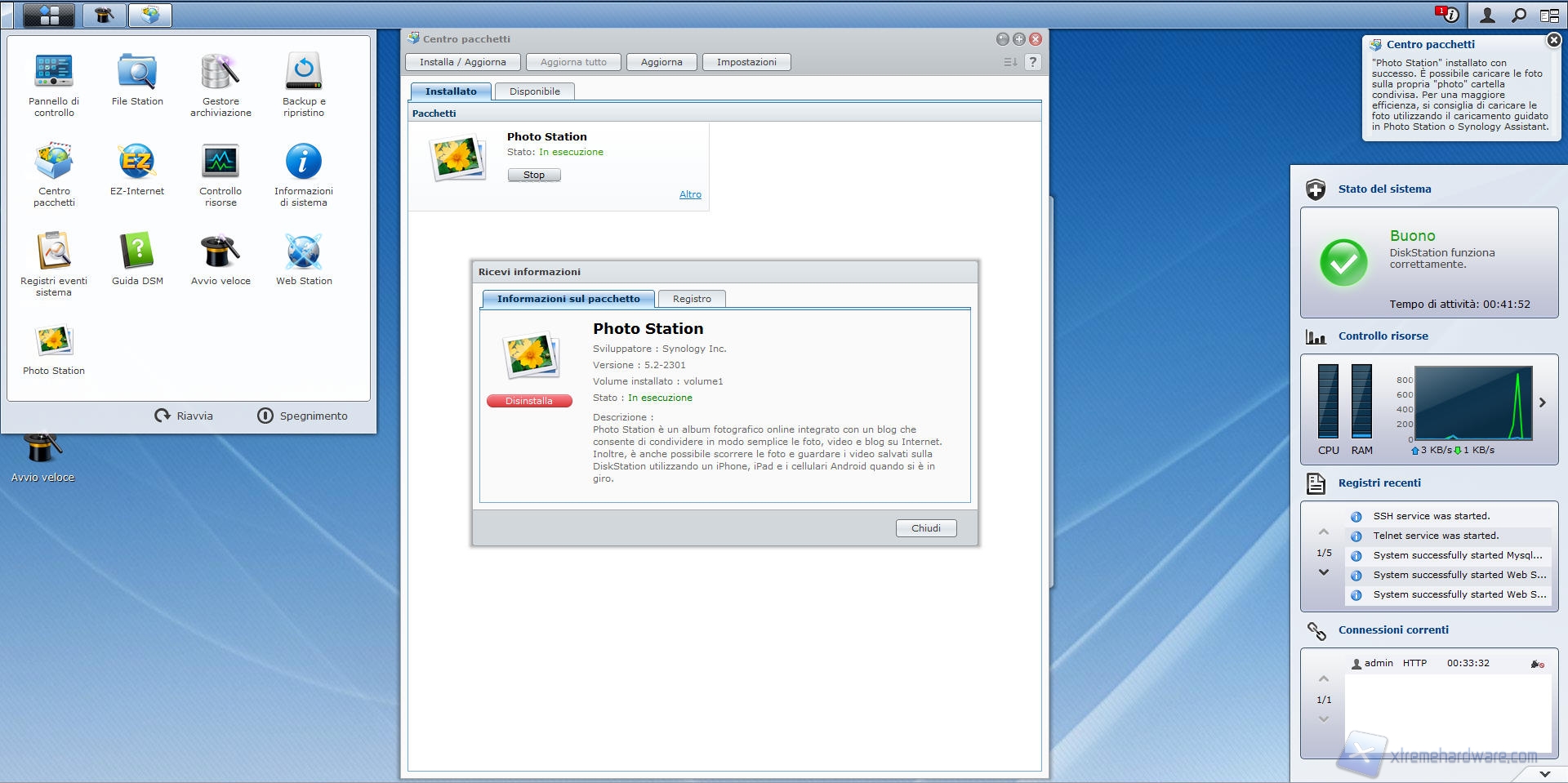 Facciamo click sull’“installa” relativo al pacchetto Photo Station, un messaggio ci chiederà se avviare immediatamente l’applicazione dopo averla installata; dopo aver effettuato la scelta, il sistema scarica ed installa il pacchetto selezionato.
